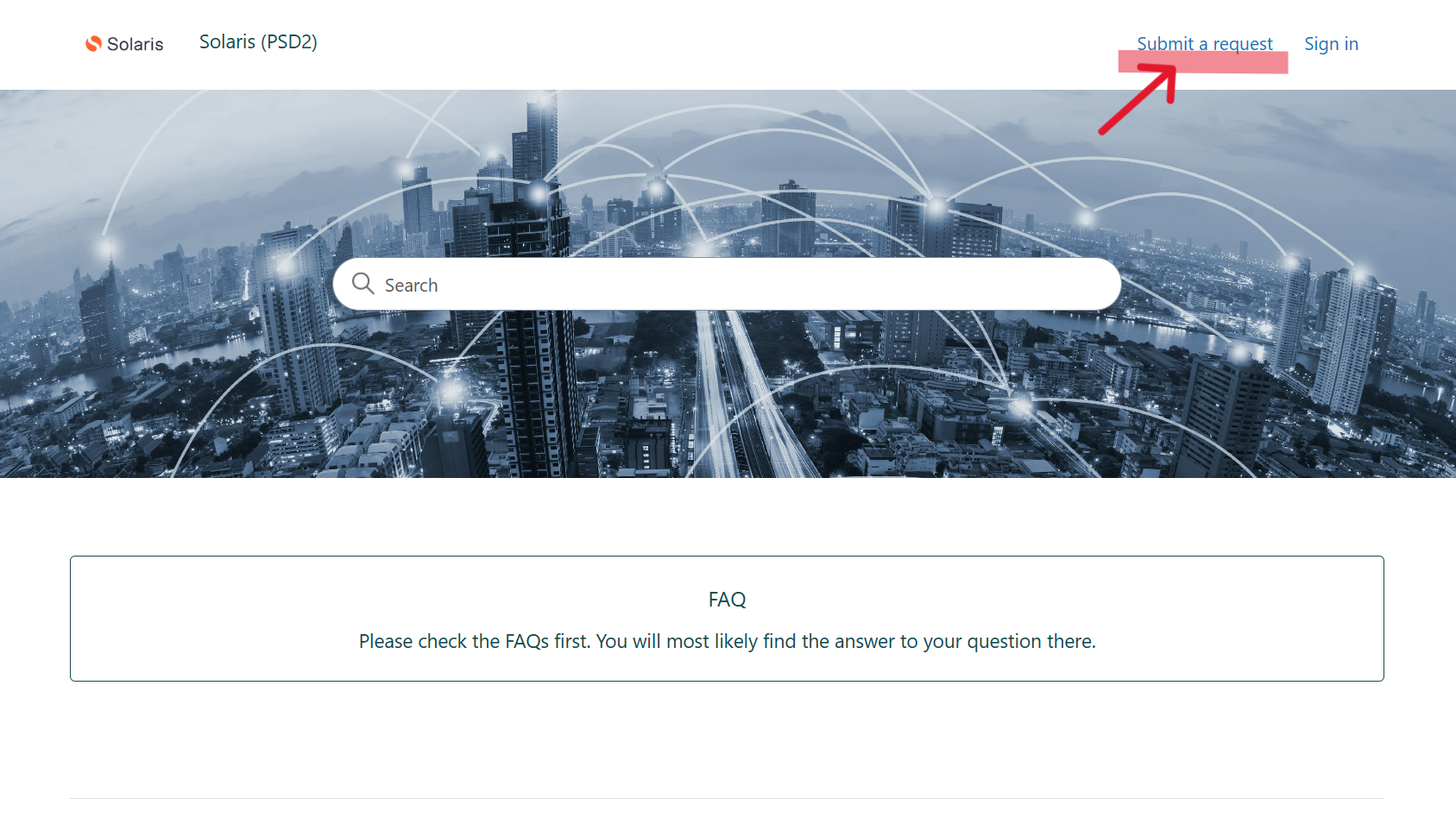 Or use the “Submit a request” button at the top right (as shown in the image).